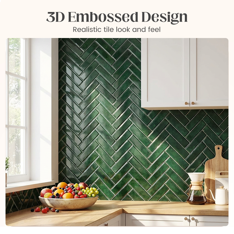 FANTASTISK 3D-PRÄGLAD STRUKTUR – Den 3D-geléliknande ytan skapar en realistisk kakeleffekt. Detta ger dina väggar ett exklusivt, strukturerat utseende utan kostnaden och komplexiteten som följer med att installera äkta keramiska kakelplattor, för en omedelbar uppgradering.