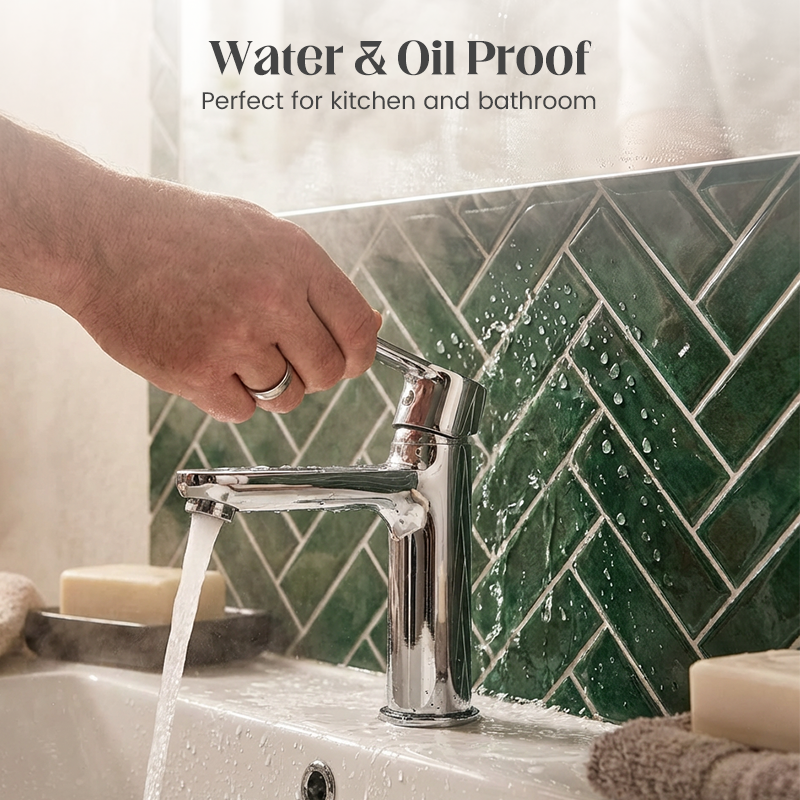 VATTENTÄT OCH VÄRMEBESTÄNDIG – Tillverkad av hållbara material som tål vatten, fukt och värme från spishällar. Den är perfekt för fuktiga utrymmen som köksstänkskydd och badrumsväggar, och garanterar långvarig skönhet och skydd.
