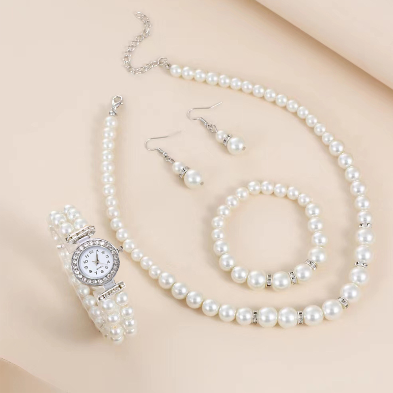 Elegant 4-delat smyckeset med imiterade pärlor för kvinnor