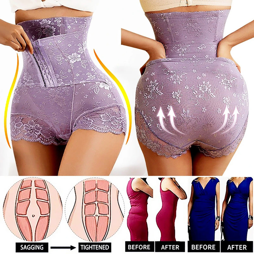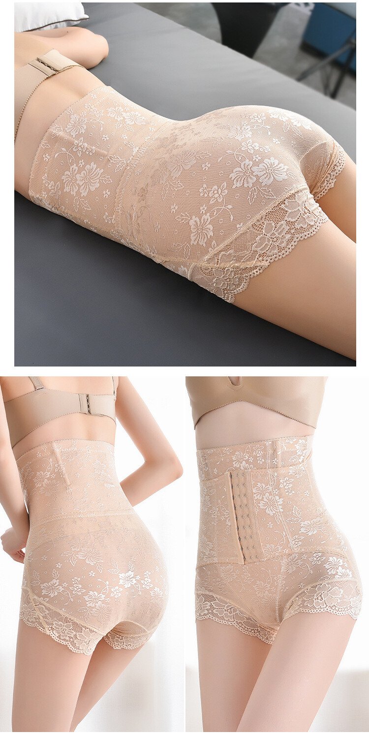 Bodyshaper-byxor med spets och krokar har ett grenparti som öppnas för snabb och enkel Ätkomst.