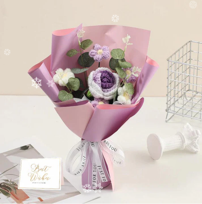 EVIG SKĂNHET â Till skillnad frĂ„n riktiga blommor kommer denna virkade bukett aldrig att vissna, blekna eller behöva vattnas. Den fungerar som ett bestĂ„ende, vackert minne av ett speciellt ögonblick och erbjuder bestĂ„ende charm i mĂ„nga Ă„r framöver.