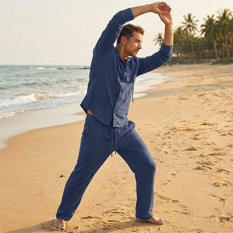 PREMIUM LINNE - Upplev överlägsen komfort med vår högkvalitativa linneblandning. Detta lätta och andningsbara tyg håller dig sval och fräsch, vilket gör det till det perfekta valet för varmare dagar eller lager-på-lager-looken i svalare väder.