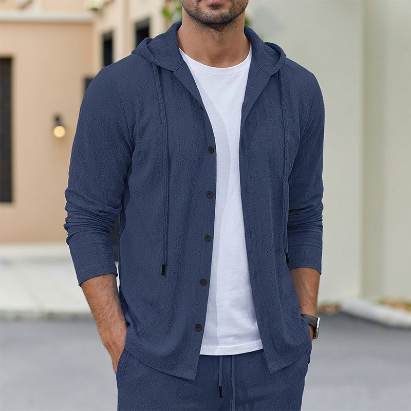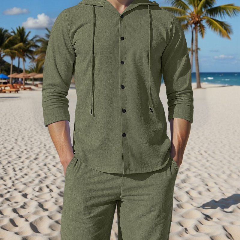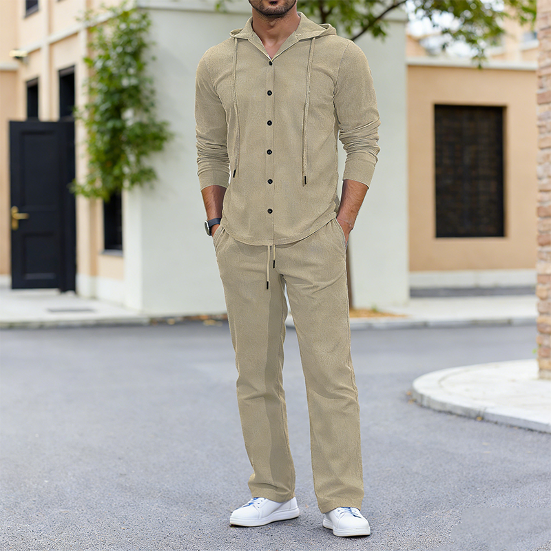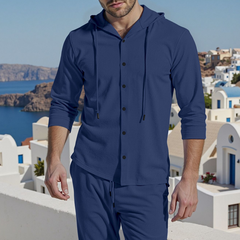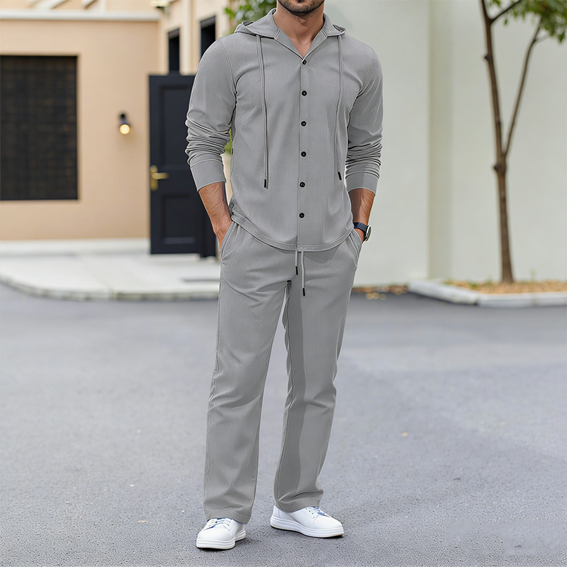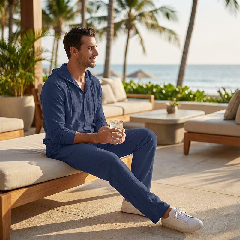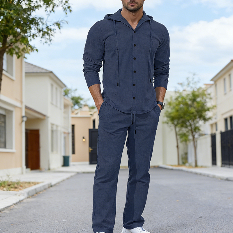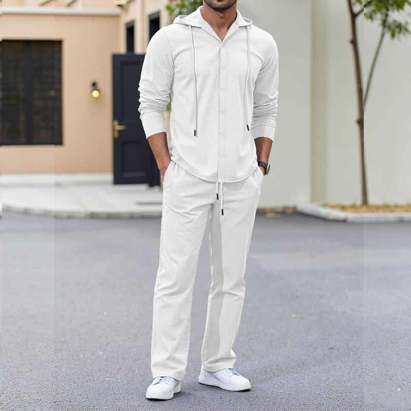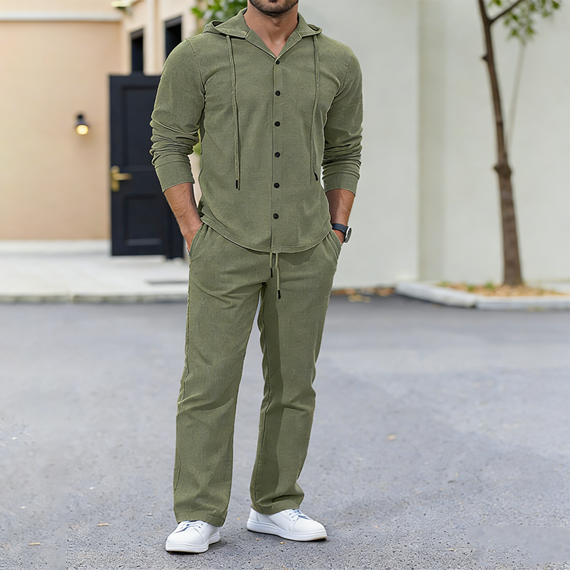 2-delat set med linne-tröja med huva och byxor för herr