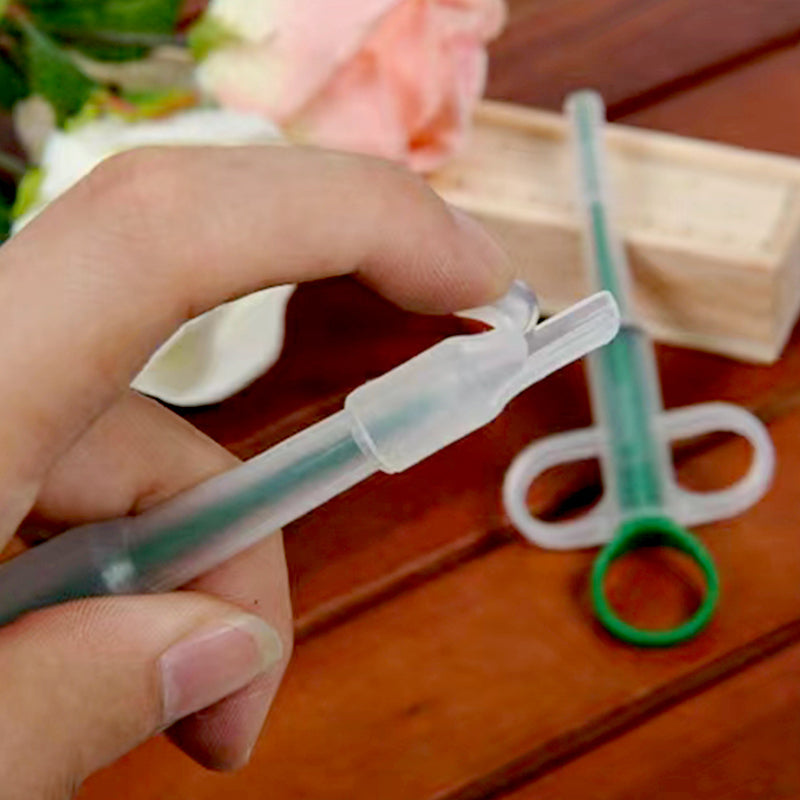 Matare för Medicin till Husdjur Àr tillverkad av FDA-godkÀnt livsmedelsklassat material. Den mjuka silikontoppen sÀkerstÀller att inget skada eller smÀrta orsakas för ditt husdjur nÀr medicinen ges direkt i halsen! Den kan anvÀndas för medicin som fasta tabletter, kapslar och Àven vÀtskor! Ladda helt enkelt in tabletten, sÀtt in den mot ditt husdjurs hals och tryck pÄ kolven för en snabb medicinering.