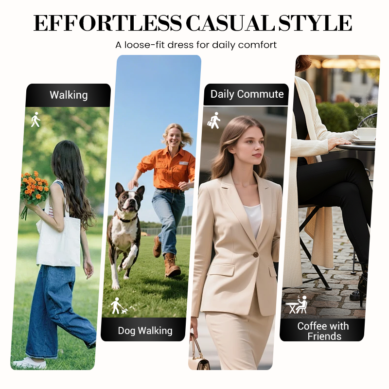 PRAKTISKA UPPRULLADE 3/4-ÄRMAR - Ger mångsidiga stylingalternativ och bekväm täckning för armarna. Du kan justera ärmarna efter eget tycke, vilket gör klänningen lämplig för att enkelt växla mellan olika temperaturer och miljöer.