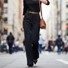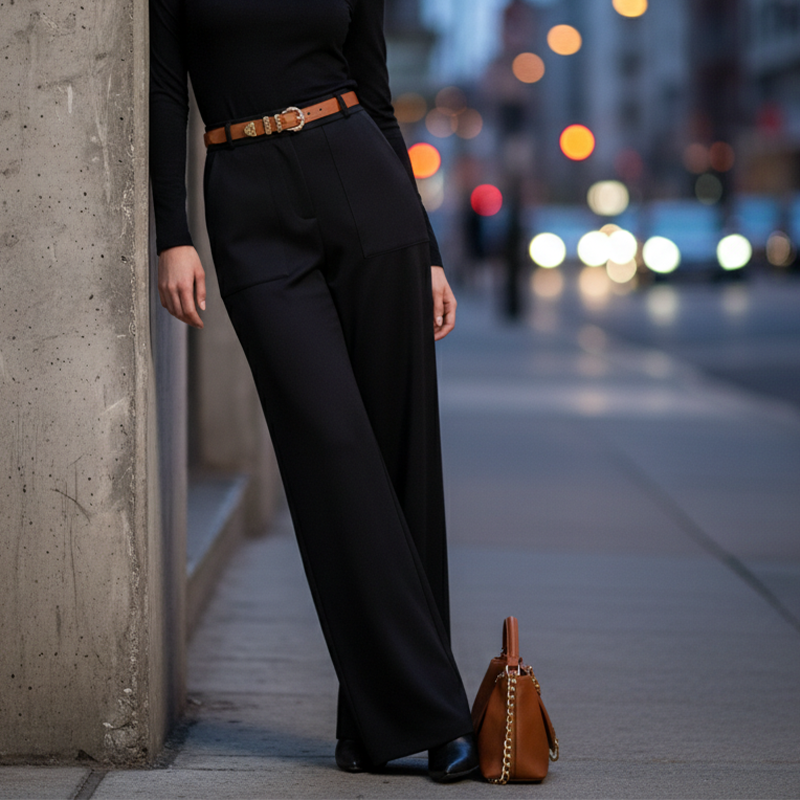 Högmidjade byxor med vida ben för damer