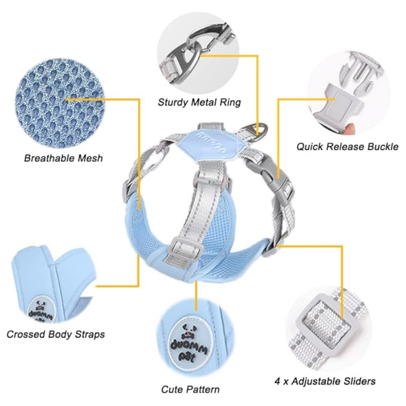 HUNDSELE OCH KOPPELSET - Vår hundsele levereras med ett hållbart nylonkoppel med högdensitetsväv. Den robusta metall-D-ringen gör det enkelt att fästa, vilket gör denna rymningssäkra sele perfekt för promenader och utomhusäventyr med din valp.